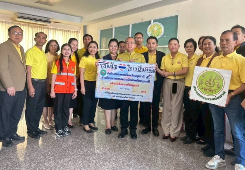 วันที่ 31 กรกฎาคม 2568 นายสมคิด จันทมฤก ผู้ว่าราชการจังหวัดปทุมธานี เป็นประธานการรับมอบตามโครงการ" ร่วมใจ ไทยเป็นหนึ่ง" ในการนี้ นางสุชาดา เคนพิทักษ์ สหกรณ์จังหวัดปทุมธานี พร้อมด้วยนางสาวพัสตราภรณ์ โคมแก้ว ผู้อำนวยการศูนย์ถ่ายทอดเทคโนโลยีการสหกรณ์ที่ 1 จังหวัดปทุมธานี และขบวนการสหกรณ์ในจังหวัดปทุมธานี ได้ร่วมกันบริจาคตามโครงการดังกล่าว เพื่อช่วยเยียวยาผู้ได้รับผลกระทบจากสถานการณ์บริเวณชายแดนไทย-กัมพูชา โดยบริจาคเป็นข้าวสารบรรจุถุงๆละ 5 กก. จำนวน 285 ถุง และนมพร้อมดื่ม อ.ส.ค. จำนวน 61 ลัง (บรรจุลังละ 36 กล่อง) มูลค่ารวมทั้งสิ้น 65,000 บาท ณ ศาลางกลางจังหวัดปทุมธานี