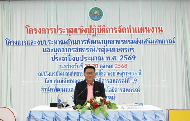 วันที่ 19 ตุลาคม 2568 นายพิษณุ พินรอด ผู้อำนวยการสำนักพัฒนาและถ่ายทอดเทคโนโลยีการสหกรณ์ เป็นประธานในการประชุมโครงการประชุมเชิงปฏิบัติการจัดทำแผนงานโครงการและงบประมาณด้านการพัฒนาบุคลากรกรมส่งเสริมสหกรณ์และบุคลากรสหกรณ์/กลุ่มเกษตรกร ประจำปีงบประมาณ พ.ศ. 2569 ในการนี้ นางสาวพัสตราภรณ์ โคมแก้ว ผู้อำนวยการศูนย์ถ่ายทอดเทคโนโลยีการสหกรณ์ที่ 1 จังหวัดปทุมธานี พร้อมด้วยนางสาวลาภิสรา พนมสินธุ์ เจ้าพนักงานการเงินและบัญชี เข้าร่วมโครงการฯ เพื่อรับทราบแนวทาง หลักเกณฑ์การประเมินผลการปฏิบัติงานด้านการฝึกอบรมเพื่อพัฒนาบุคลากรของกรมส่งเสริมสหกรณ์และบุคลากรของสหกรณ์ และแลกเปลี่ยนความคิดเห็นในการปรับปรุงและพัฒนาแนวทางในการทำงานร่วมกันเพื่อให้เกิดประสิทธิภาพมากยิ่งขึ้น ทั้งนี้ ในปีงบประมาณ 2569 มีโครงการสำคัญของสำนักพัฒนาและถ่ายทอดเทคโนโลยีการสหกรณ์ที่จะเร่งดำเนินการ อาทิ โครงการส่งเสริมและพัฒนาสถาบันเกษตรกรสร้างรูปแบบเพื่อเป็นแนวทางสู่การพัฒนาสหกรณ์เข้มแข็ง (Strong Coop Model : SCM) การพัฒนาหลักสูตรอบรมเพื่อให้สหกรณ์และกลุ่มเกษตรกรได้รับการส่งเสริมและพัฒนาให้มีความเข้มแข็งตามศักยภาพ การส่งเสริมความรู้ด้านการสหกรณ์ การพัฒนาศักยภาพบุคลากรกรมส่งเสริมสหกรณ์ การพัฒนาระบบ E - Learning ซึ่งการประชุมครั้งนี้ จัดขึ้นระหว่างวันที่ 19-20 ตุลาคม 2568 ณ โรงแรมไดมอนด์ พลาซ่า อำเภอเมืองจังหวัดสุราษฎร์ธานี