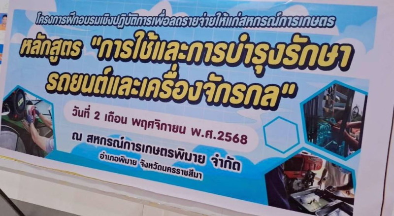 วันที่ 2 พฤศจิกายน 2568 ส.ต.อ.ชัยณรงค์ ยมศรีเคน นายช่างเครื่องกลชำนาญงาน ศูนย์ถ่ายทอดเทคโนโลยีการสหกรณ์ที่ 1 จังหวัดปทุมธานี ร่วมเป็นวิทยากรกับทีมวิทยากรของศูนย์ถ่ายทอดเทคโนโลยีการสหกรณ์ที่ 6 จังหวัดนครราชสีมา หลักสูตร "การใช้และบำรุงรักษารถยนต์และเครื่องจักรกล"ของสหกรณ์การเกษตรพิมาย จำกัด ซึ่งเป็นการให้ความรู้เกี่ยวกับหลักการทำงานของเครื่องยนต์ ระบบการทำงานของเครื่องยนต์และเครื่องจักร รวมทั้งเป็นวิทยากรการฝึกปฏิบัติการใช้งานและบำรุงรักษาระบบต่างๆ ให้กับเจ้าหน้าที่ของสหกรณ์ จำนวน 20 คน เพื่อลดรายจ่ายให้แก่สหกรณ์การเกษตร ณ สหกรณ์การเกษตรพิมาย จำกัด อำเภอพิมาย จังหวัดนครราชสีมา