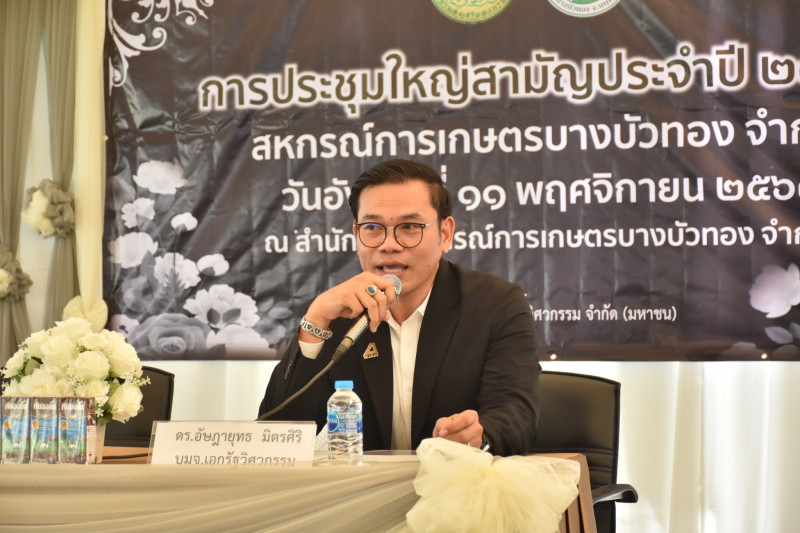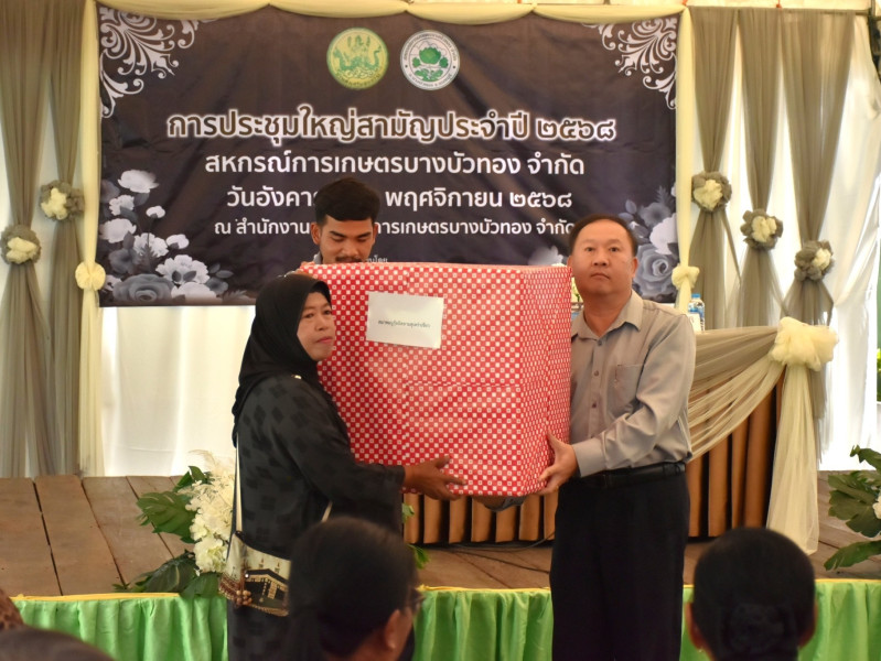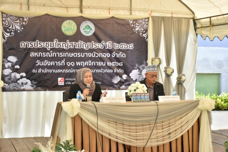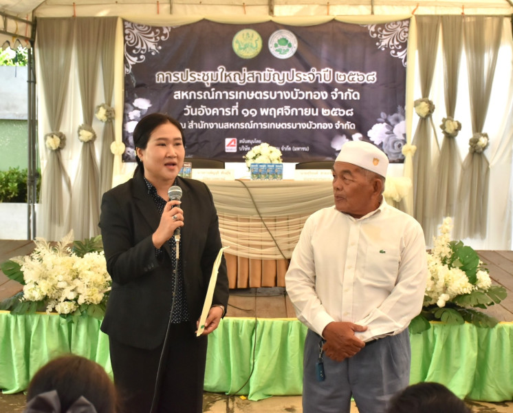 วันที่ 11 พฤศจิกายน 2568 นางสาวพัสตราภรณ์ โคมแก้ว ผู้อำนวยการศูนย์ถ่ายทอดเทคโนโลยีการสหกรณ์ที่ 1 จังหวัดปทุมธานี พร้อมด้วยทีมฝึกอบรม เข้าร่วมประชุมใหญ่สามัญประจำปี 2568 ของสหกรณ์การเกษตรบางบัวทอง จำกัด ซึ่งได้รับเกียรติจาก ดร.อัษฎายุทธ มิตรศิริ ผู้จัดการฝ่ายอาวุโส บริษัท เอกรัฐวิศวกรรม จำกัด (มหาชน) เป็นประธานในพิธีเปิดการประชุม มีสมาชิกเข้าร่วมประชุม จำนวน 274 คน โดยมีนางสาวศศลักษณ์ มณีนิล ผู้อำนวยการกลุ่มส่งเสริมและพัฒนาธุรกิจสหกรณ์ สำนักงานสหกรณ์จังหวัดนนทบุรี พร้อมคณะ เข้าร่วมประชุมฯ ในการนี้ผู้อำนวยการศูนย์ฯ เป็นวิทยากรให้ความรู้ด้านหลักการ อุดมการณ์ วิธีการสหกรณ์ แนวทางในการดำรงชีวิตในปัจจุบัน และสิทธิหน้าที่ของสมาชิกเพื่อการพัฒนาสหกรณ์ไปสู่ความเข้มแข็ง อีกทั้งได้จัดนิทรรศการพร้อมแจกเอกสารเผยเพร่ให้แก่สมาชิกสหกรณ์ รวมถึงประชาสัมพันธ์ส่งเสริมการดื่มนมคุณภาพ ซึ่งเป็นการขับเคลื่อนนโยบายในการช่วยเหลือสมาชิกสหกรณ์โคนม และยังเป็นการสานต่ออาชีพพระราชทานและกระตุ้นเศรษฐกิจฐานรากที่สำคัญของประเทศ ซึ่งปัจจุบันสหกรณ์การเกษตรบางบัวทอง จำกัด มีสมาชิก จำนวน 993 คน ดำเนินธุรกิจ 3 ด้าน ได้แก่ ด้านธุรกิจสินเชื่อ ด้านธุรกิจจัดหาสินค้ามาจำหน่าย และด้านธุรกิจเงินรับฝาก มีทุนดำเนินงานทั้งสิ้น จำนวน 214,968,991.20 บาท และมีผลการดำเนินงานมีกำไรสุทธิ จำนวน 9,090,332.60 บาท ซึ่งเพิ่มขึ้นถึงร้อยละ 25.87 เมื่อเทียบกับปี 2567 นอกจากนี้สหกรณ์ยังมีกิจกรรมมอบรางวัลให้แก่ผู้นำกลุ่ม สมาชิกที่มีส่วนร่วมกับธุรกิจสหกรณ์ดีเด่น และมอบเงินสนับสนุนกิจกรรมชุมชนให้กับมัสยิดในเขตที่ตั้งพลังงานไฟฟ้า ณ ที่ทำการสหกรณ์การเกษตรบางบัวทอง จำกัด ตำบลละหาร อำเภอบางบัวทอง จังหวัดนนทบุรี
