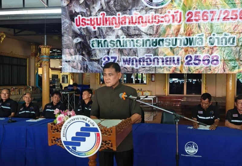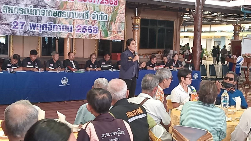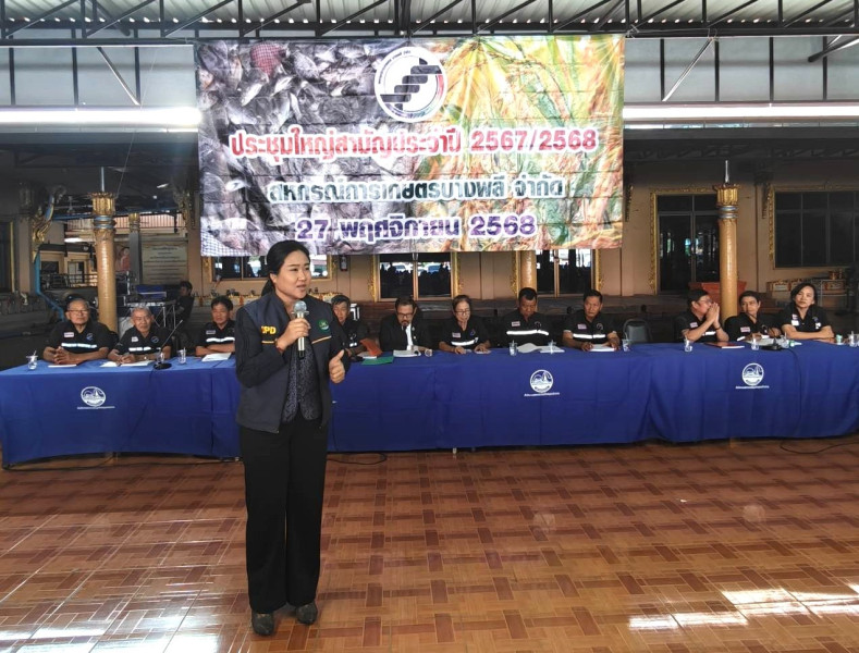 วันที่ 27 พฤศจิกายน 2568 นางสาวพัสตราภรณ์ โคมแก้ว ผู้อำนวยการศูนย์ถ่ายทอดเทคโนโลยีการสหกรณ์ที่ 1 จังหวัดปทุมธานี เข้าร่วมการประชุมใหญ่สามัญประจำปี 2567/68 ของสหกรณ์การเกษตรบางพลี จำกัด โดยมีท่านสุนทร ปานแสงทอง นายกองค์การบริหารส่วนจังหวัดสมุทรปราการ เป็นประธานในพิธีเปิดการประชุมใหญ่ พร้อมด้วยผู้แทนสำนักงานสหกรณ์จังหวัดสมุทรปราการ ผู้แทนจากสำนักงานตรวจบัญชีสหกรณ์จังหวัดสมุทรปราการ หัวหน้าสำนักงานกองทุนฟื้นฟูและพัฒนาเกษตรกรสาขาสมุทรปราการ ประธานกรรมการกองทุนฟื้นฟูพร้อมคณะอนุกรรมการกองทุน ประธานกรรมการสหกรณ์ออมทรัพย์การบินไทย จำกัด ในการนี้ ผู้อำนวยการศูนย์ฯ ได้เน้นย้ำถึงบทบาทของสมาชิกในการมีส่วนร่วมที่จะพัฒนาความเข้มแข็งของสหกรณ์ ณ วัดบางพลีใหญ่ อำเภอบางพลี จังหวัดสมุทรปราการ