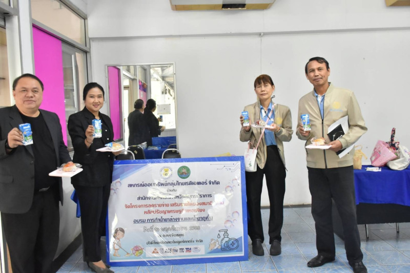 วันที่ 29 พฤศจิกายน 2568 นางสาวพัสตราภรณ์ โคมแก้ว ผู้อำนวยการศูนย์ถ่ายทอดเทคโนโลยีการสหกรณ์ ที่ 1 จังหวัดปทุมธานี พร้อมด้วยนายธนภัทร วรรณทวี นักทรัพยากรบุคคล เป็นวิทยากรให้ความรู้การประยุกต์ใช้ปรัชญาเศรษฐกิจพอเพียงในสหกรณ์ออมทรัพน์ และร่วมบูรณาการด้านการฝึกอบรม (Training Hub) โดยวิทยากร อาจารย์นพวรรณ์ พรศิริ จากคณะวิทยาศาสตร์และเทคโนโลยี มหาวิทยาลัยราชภัฏพระนคร ในการฝึกปฏิบัติ “การทำน้ำยาล้างจานและน้ำยาถูพื้น” ร่วมกับสำนักงานสหกรณ์จังหวัดสมุทรปราการ ในโครงการ “ลดรายจ่าย เสริมรายได้ของสมาชิกสหกรณ์ ตามหลักปรัชญาเศรษฐกิจพอเพียง” ของสหกรณ์ออมทรัพย์กลุ่มไทยเรดิเอเตอร์ จำกัด ซึ่งมีสมาชิกสหกรณ์เข้าร่วมโครงการฯ จำนวน 50 คน ซึ่งมีวัตถุประสงค์เพื่อให้สมาชิกสหกรณ์ได้รับความรู้ และพัฒนาทักษะด้านอาชีพเสริม โดยสมาชิกและครอบครัวมีแนวทางในการลดรายจ่ายประจำวันในครัวเรือน ตลอดจนสร้างโอกาสทางเลือกในการประกอบอาชีพเสริม เพิ่มรายได้ควบคู่การประกอบอาชีพหลัก สามารถพึ่งพาตนเองตามแนวคิดปรัชญาเศรษฐกิจพอเพียงได้ ณ อาคารจ้าวสมุทร สหกรณ์ออมทรัพย์กลุ่มไทยเรดิเอเตอร์ จำกัด อำเภอบางพลี จังหวัดสมุทรปราการ