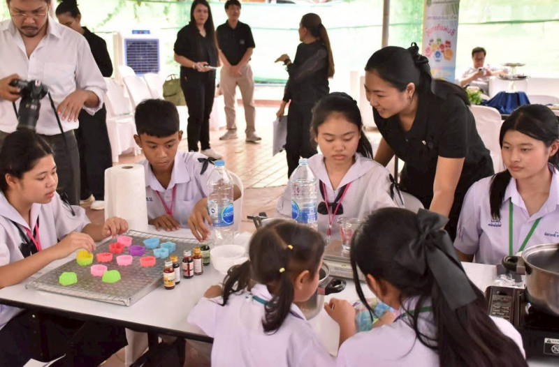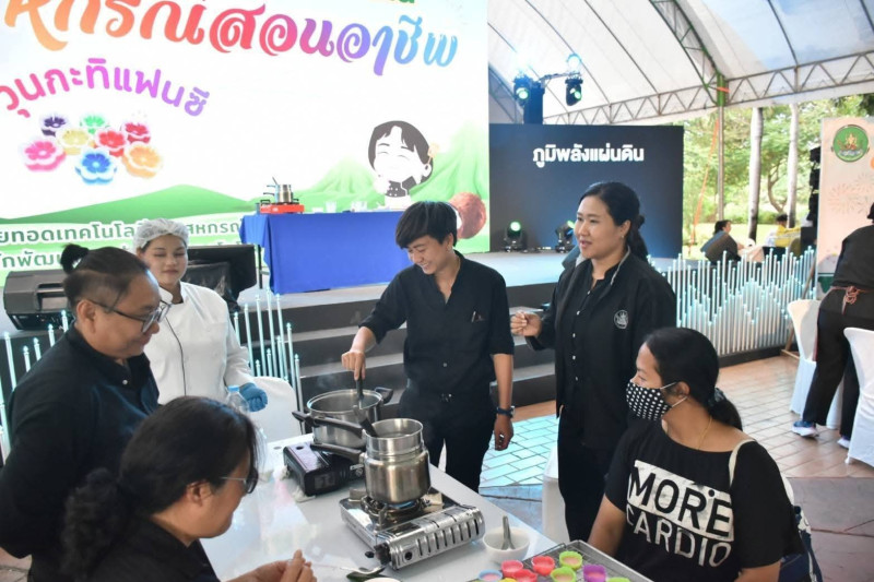 วันที่ 4 ธันวาคม 2568 นายอนุรัตน์ เลื่อนลอย ผู้อำนวยการสำนักพัฒนาและถ่ายทอดเทคโนโลยีการสหกรณ์ พร้อมด้วยนางสาวพัสตราภรณ์ โคมแก้ว ผู้อำนวยการศูนย์ถ่ายทอดเทคโนโลยีการสหกรณ์ที่ 1 จังหวัดปทุมธานี และบุคลากรศูนย์ฯ จัดกิจกรรม "สหกรณ์สอนอาชีพ" งานมหกรรมเกษตรไทยก้าวสู่อนาคต ด้วยศาสตร์พระราชา ซึ่งได้รับมอบหมายจากกรมส่งเสริมสหกรณโดยมีวัตถุประสงค์เพื่อส่งเสริมให้ประชาชนมีความรู้และทักษะด้านการประกอบอาชีพ สามารถสร้างโอกาสและทางเลือกในการเพิ่มรายได้และลดรายจ่ายในครัวเรือน รวมทั้งเพื่อให้ใช้เวลาว่างให้เกิดประโยชน์ต่อตนเองและครอบครัว ตลอดจนมีการดำเนินชีวิตบนพื้นฐานแนวคิดปรัชญาเศรษฐกิจ ซึ่งได้รับเกียรติจากรองศาสตราจารย์ ดร.มนัญญา คำวชิระพิทักษ์ และคณะวิทยากร คณะวิทยาศาสตร์และเทคโนโลยี มหาวิทยาลัยราชภัฏวไลยอลงกรณ์ ในพระบรมราชูปถัมภ์ ได้สาธิตและฝึกปฏิบัติ “วุ้นกะทิแฟนซี” ซึ่งมีผู้สนใจเข้าร่วมกิจกรรม จำนวน 43 คน ณ เวทีกลางงานมหกรรมเกษตรไทยก้าวสู่อนาคต ด้วยศาสตร์พระราชา พิพิธภัณฑ์การเกษตรเฉลิมพระเกียรติพระบาทสมเด็จพระเจ้าอยู่หัว ตำบลคลองหนึ่ง อำเภอคลองหลวง จังหวัดปทุมธานี