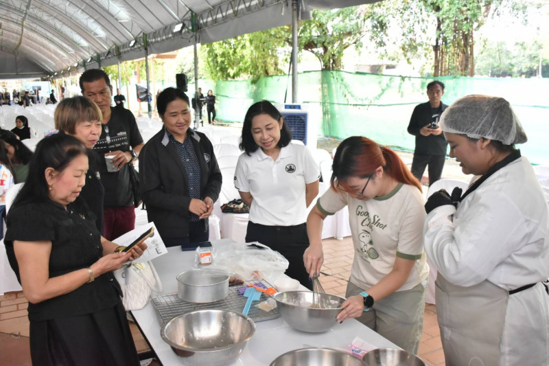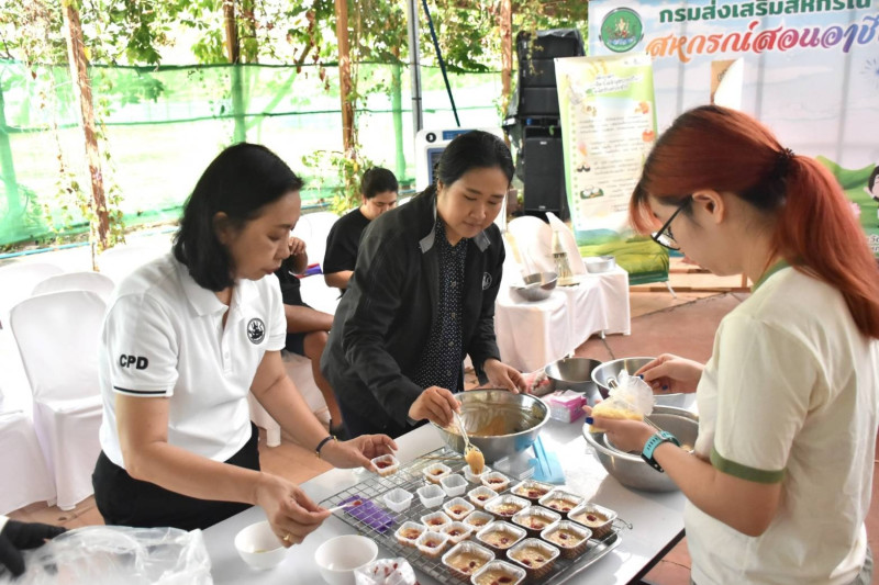 วันที่ 5 ธันวาคม 2568 นางสาวพัสตราภรณ์ โคมแก้ว ผู้อำนวยการศูนย์ถ่ายทอดเทคโนโลยีการสหกรณ์ที่ 1 จังหวัดปทุมธานี พร้อมด้วยบุคลากรศูนย์ฯ จัดกิจกรรม "สหกรณ์สอนอาชีพ" งานมหกรรมเกษตรไทยก้าวสู่อนาคต ด้วยศาสตร์พระราชา ซึ่งได้รับมอบหมายจากกรมส่งเสริมสหกรณ์ โดยมีวัตถุประสงค์เพื่อส่งเสริมให้ประชาชนมีความรู้และทักษะด้านการประกอบอาชีพ สามารถสร้างโอกาสและทางเลือกในการเพิ่มรายได้และลดรายจ่ายในครัวเรือน รวมทั้งเพื่อให้ใช้เวลาว่างให้เกิดประโยชน์ต่อตนเองและครอบครัว ตลอดจนมีการดำเนินชีวิตบนพื้นฐานแนวคิดปรัชญาเศรษฐกิจ ในการนี้นางสุชาดา เคนพิทักษ์ สหกรณ์จังหวัดปทุมธานี เข้าร่วมกิจกรรมสาธิตและฝึกปฏิบัติ “คัพเค้กกล้วยหอม” โดยได้รับเกียรติจากรองศาสตราจารย์ ดร.มนัญญา คำวชิระพิทักษ์ และคณะวิทยากร คณะวิทยาศาสตร์และเทคโนโลยี มหาวิทยาลัยราชภัฏวไลยอลงกรณ์ ในพระบรมราชูปถัมภ์เป็นวิทยากร ซึ่งมีผู้สนใจเข้าร่วมกิจกรรม จำนวน 52 คน ณ เวทีกลางงานมหกรรมเกษตรไทยก้าวสู่อนาคต ด้วยศาสตร์พระราชา พิพิธภัณฑ์การเกษตรเฉลิมพระเกียรติพระบาทสมเด็จพระเจ้าอยู่หัว ตำบลคลองหนึ่ง อำเภอคลองหลวง จังหวัดปทุมธานี