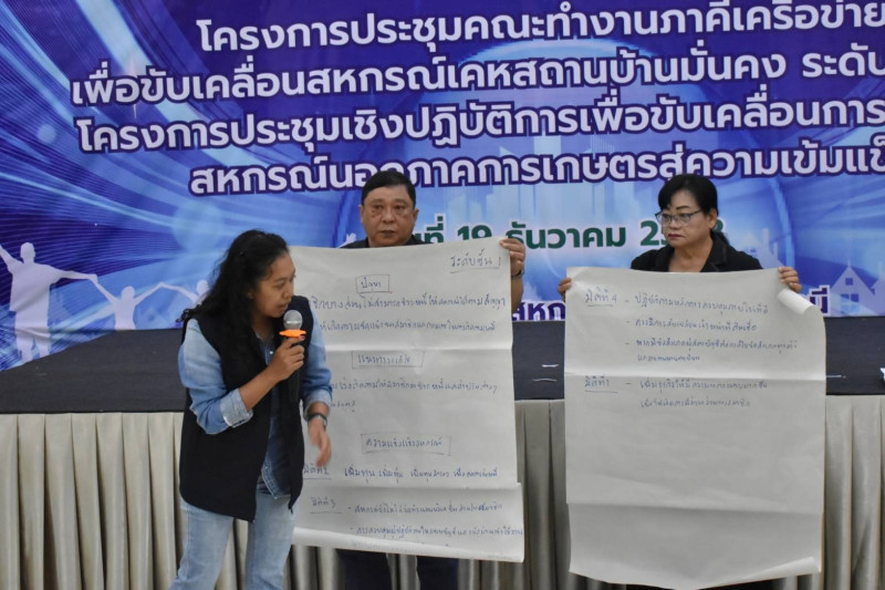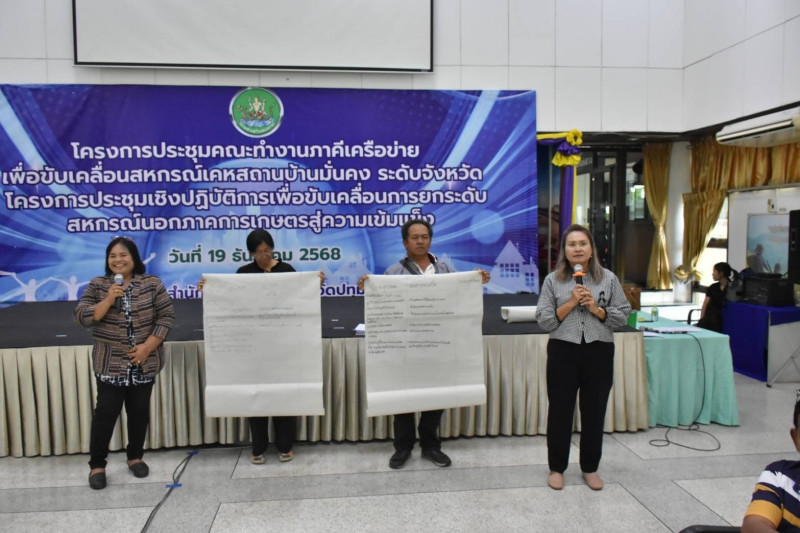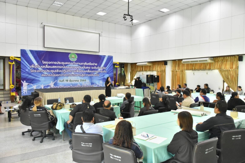 วันที่ 19 ธันวาคม 2568 นางสุรางค์ คัยนันท์ ผู้เชี่ยวชาญด้านพัฒนาธุรกิจสหกรณ์ออมทรัพย์เป็นประธานการประชุมคณะทำงานภาคีเครือข่ายเพื่อขับเคลื่อนสหกรณ์เคหสถานบ้านมั่นคง ระดับจังหวัด และประชุมเชิงปฏิบัติการเพื่อขับเคลื่อนการยกระดับสหกรณ์นอกภาคการเกษตรสู่ความเข้มแข็ง โดยมีวัตถุประสงค์เพื่อวางแผนแก้ไขปัญหาการดำเนินงานของสหกรณ์เคหสถานภายใต้โครงการบ้านมั่นคง บูรณาการภาคีเครือข่าย ลดความเหลื่อมล้ำในการขับเคลื่อนงานสหกรณ์ แนะนำ ส่งเสริมให้สหกรณ์มีความรู้ในเรื่องของการบริหารงานได้อย่างมีประสิทธิภาพ เพื่อรักษาและยกระดับสหกรณ์ หรือพัฒนาความเข้มแข็งสู่ระดับที่ดีขึ้น ในการนี้นางสุชาดา เคนพิทักษ์ สหกรณ์จังหวัดปทุมธานี พร้อมด้วยนางสาวพัสตราภรณ์ โคมแก้ว ผู้อำนวยการศูนย์ถ่ายทอดเทคโนโลยีการสหกรณ์ที่ 1 จังหวัดปทุมธานี และบุคลากรสำนักงานสหกรณ์จังหวัดปทุมธานี คณะทำงานภาคีเครือข่ายเพื่อขับเคลื่อนสหกรณ์เคหสถานบ้านมั่นคง และผู้แทนสหกรณ์นอกภาคการเกษตร จำนวน 25 แห่ง เข้าร่วมในการประชุมดังกล่าว โดยในการประชุมครั้งนี้ได้ดำเนินการจัดกิจกรรมการแก้ไขปัญหาสหกรณ์เคหสถานบ้านมั่นคง เพื่อวิเคราะห์ประเด็นปัญหาพร้อมทั้งจัดทำแผนการดำเนินงาน ณ ศูนย์ถ่ายทอดเทคโนโลยีการสหกรณ์ที่ 2 จังหวัดปทุมธานี