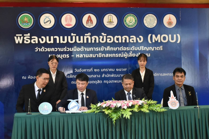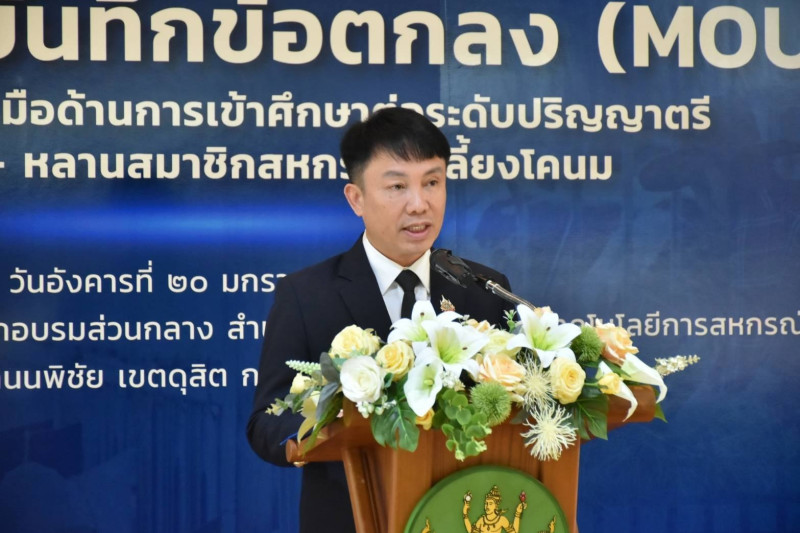 วันที่ 20 มกราคม 2569 นายนิรันดร์ มูลธิดา อธิบดีกรมส่งเสริมสหกรณ์ เป็นประธานในพิธีลงนามบันทึกข้อตกลง (MOU) ว่าด้วยความร่วมมือด้านการเข้าศึกษาต่อระดับปริญญาตรีของบุตร - หลานสมาชิกสหกรณ์ผู้เลี้ยงโคนม ระหว่างกรมส่งเสริมสหกรณ์ และมหาวิทยาลัยชั้นนำ 6 แห่ง พร้อมด้วย นายณฤทธิ์ บุญชัย รองอธิบดีกรมส่งเสริมสหกรณ์ นางสาวปรานอม จันทร์ใหม่ ผู้เชี่ยวชาญ รักษาการในตำแหน่งผู้ทรงคุณวุฒิด้านการสหกรณ์ นายอนุรัตน์ เลื่อนลอย ผู้อำนวยการสำนักพัฒนาและถ่ายทอดเทคโนโลยีการสหกรณ์ คณะผู้บริหารกรมส่งเสริมสหกรณ์ คณะผู้บริหารมหาวิทยาลัยทั้ง 6 แห่ง ผู้มีเกียรติเข้าร่วมในพิธีดังกล่าว ในการนี้นางสาวพัสตราภรณ์ โคมแก้ว ผู้อำนวยการศูนย์ถ่ายทอดเทคโนโลยีการสหกรณ์ที่ 1 จังหวัดปทุมธานี พร้อมบุคลากรศูนย์ฯ เข้าร่วมในพิธีด้วย กรมส่งเสริมสหกรณ์ ให้ความสำคัญกับการส่งเสริมความเข้มแข็งและยกระดับคุณภาพชีวิตของสมาชิกสหกรณ์ผู้เลี้ยงโคนม ซึ่งเป็นอาชีพพระราชทานมา หนึ่งในกลไกสำคัญคือการใช้การศึกษาเข้ามาพัฒนา โดยให้การ สนับสนุนทุนการศึกษาแก่บุตร – หลานสมาชิกสหกรณ์ผู้เลี้ยงโคนม ให้ได้เข้าศึกษาต่อในระดับปริญญาตรีในสาขาวิชาที่เกี่ยวข้อง เพื่อนำองค์ความรู้มาพัฒนาสานต่ออาชีพการเลี้ยงโคนม โดยในปี 2569 – 2571 กรมส่งเสริมสหกรณ์ โดยกองทุนพัฒนาสหกรณ์ (กพส.) สนับสนุนทุนการศึกษาจำนวน 141 ทุน ภายใต้วงเงินกว่า 31 ล้านบาท ให้ผู้ได้รับการสนับสนุนทุนการศึกษาเข้าศึกษาต่อในสถาบันการศึกษาภายใต้ความร่วมมือทั้ง 6 แห่ง ประกอบไปด้วย 1. จุฬาลงกรณมหาวิทยาลัย 2. มหาวิทยาลัยขอนแก่น 3. มหาวิทยาลัยมหาสารคาม 4. มหาวิทยาลัยแม่โจ้ 5. มหาวิทยาลัยเกษตรศาสตร์ วิทยาเขตกำแพงแสง และ 6. มหาวิทยาลัยเทคโนโลยีราชมงคลศรีวิชัย อธิบดีกรมส่งเสริมสหกรณ์ ยังกล่าวเสริมด้วยว่า “การลงทุนในครั้งนี้ไม่ใช่แค่การศึกษา แต่เป็นการลงทุนเพื่อพัฒนาเกษตรกรและสหกรณ์ไทย” ณ ห้องประชุม ฝ. 301 ชั้น 3 อาคารฝึกอบรมส่วนกลาง สำนักพัฒนาและถ่ายทอดเทคโนโลยีการสหกรณ์ เขตดุสิต กรุงเทพมหานคร