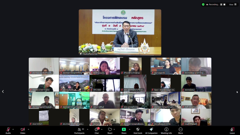 วันที่ 5 มีนาคม 2569 นายอนุรัตน์ เลื่อนลอย ผู้อำนวยการสำนักพัฒนาและถ่ายทอดเทคโนโลยีการสหกรณ์ เป็นประธานเปิดโครงการฝึกอบรมหลักสูตร “พัฒนาศักยภาพบุคลากรด้านสินเชื่อและการบริหารความเสี่ยงของสหกรณ์” รุ่นที่ 1 ผ่านระบบประชุม Zoom Meeting จัดขึ้นระหว่างวันที่ 5 - 6 มีนาคม 2569 วัตถุประสงค์เพื่อให้ผู้เข้าอบรมมีความรู้และเข้าใจหลักการ แนวคิด และกระบวนการบริหารธุรกิจสินเชื่อสหกรณ์ภาคการเกษตรอย่างถูกต้องและเป็นระบบ สามารถนำไปประยุกต์ใช้ในการพิจารณาและจัดการสินเชื่อได้อย่างเหมาะสมกับบริบทของสมาชิกเกษตรกร ผู้เข้าอบรมประกอบด้วย ผู้จัดการ เจ้าหน้าที่สินเชื่อ คณะกรรมการเงินกู้ หรือผู้ทำหน้าที่ด้านสินเชื่อในพื้นที่รับผิดชอบของศูนย์ถ่ายทอดเทคโนโลยีการสหกรณ์ที่ 1 - 8 รวมจำนวน 325 คน ในการนี้นางสาวพัสตราภรณ์ โคมแก้ว ผู้อำนวยการศูนย์ถ่ายทอดเทคโนโลยีการสหกรณ์ที่ 1 จังหวัดปทุมธานี มอบหมายทีมฝึกอบรม ร่วมจัดโครงการฯ และประสานกลุ่มเป้าหมายในพื้นที่เข้าร่วมอบรม โดยในช่วงเช้าได้รับเกียรติจากนายศักดิ์ธนา แก้วเกิด วิทยากรอิสระด้านงานสหกรณ์ บรรยายหัวข้อ “หลักการดำเนินธุรกิจสหกรณ์และการบริหารสินเชื่อสหกรณ์” และในช่วงบ่ายได้รับเกียรติจากนายวิสุทธิ์ กี้เจริญ อดีตผู้ช่วยผู้อำนวยการ 11 ฝ่ายตรวจสอบ ธ.ก.ส.สำนักงานใหญ่ บรรยายหัวข้อ “หลักการและกระบวนการบริหารสินเชื่อสหกรณ์อย่างเป็นระบบ” โดยถ่ายทอดสัญญาณจากห้องประชุมศูนย์ถ่ายทอดเทคโนโลยีการสหกรณ์ที่ 7 จังหวัดขอนแก่น อำเภอเมือง จังหวัดขอนแก่น ณ ศูนย์ถ่ายทอดเทคโนโลยีการสหกรณ์ที่ 1 อำเภอคลองหลวง จังหวัดปทุมธานี